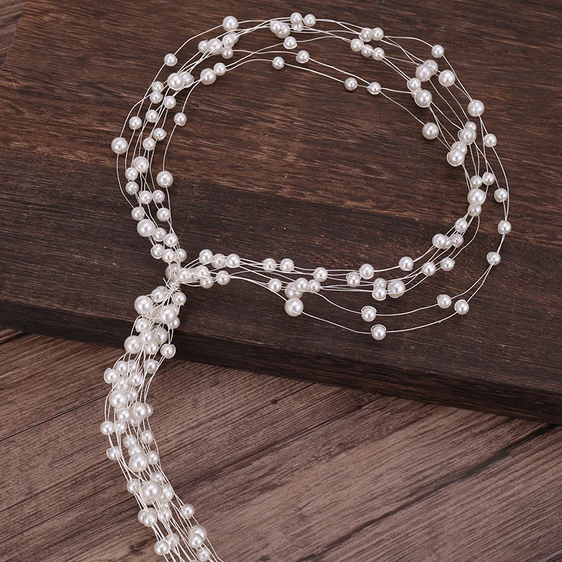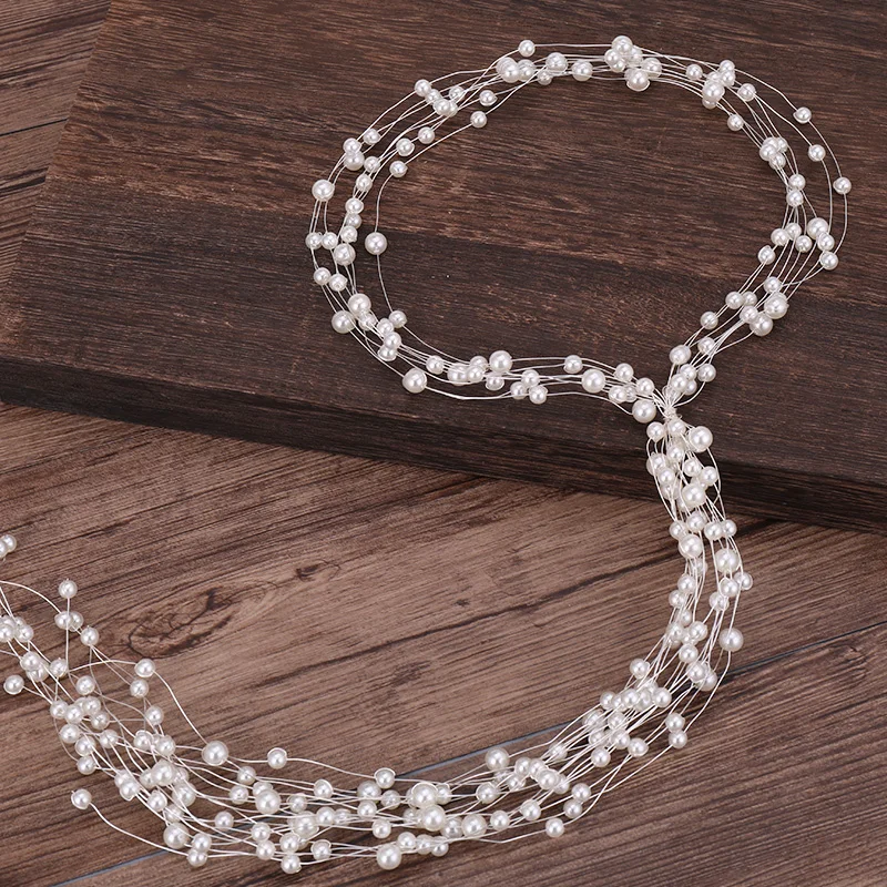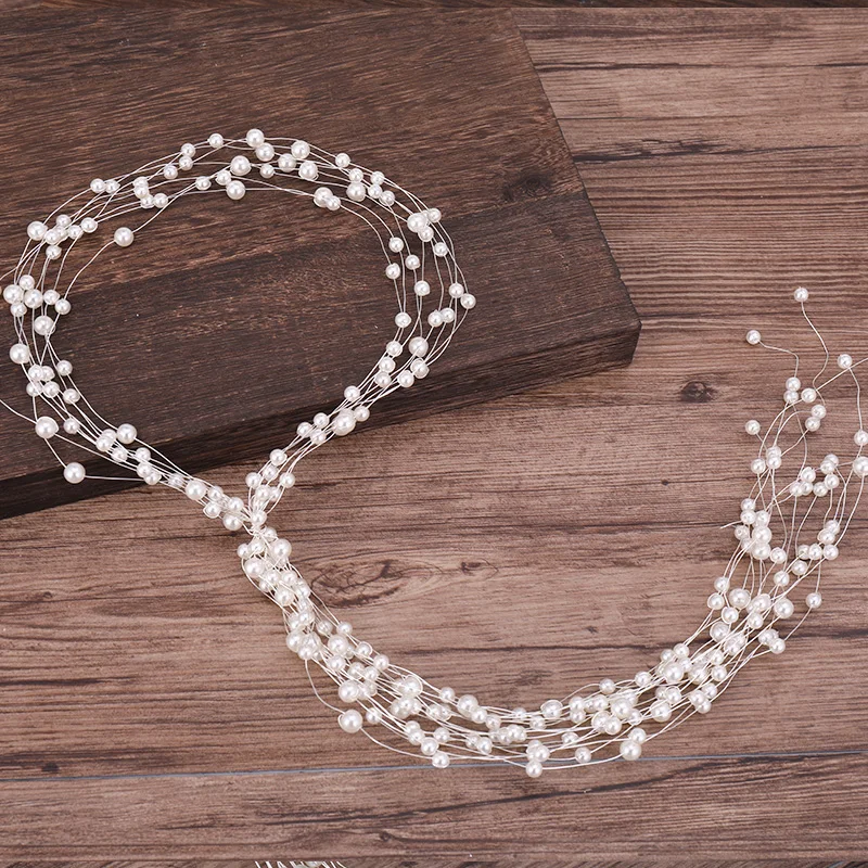 New Simulated Pearls Bridal Headbands Wedding Tassel Hair Accessories Girl Long Hairbands For Women