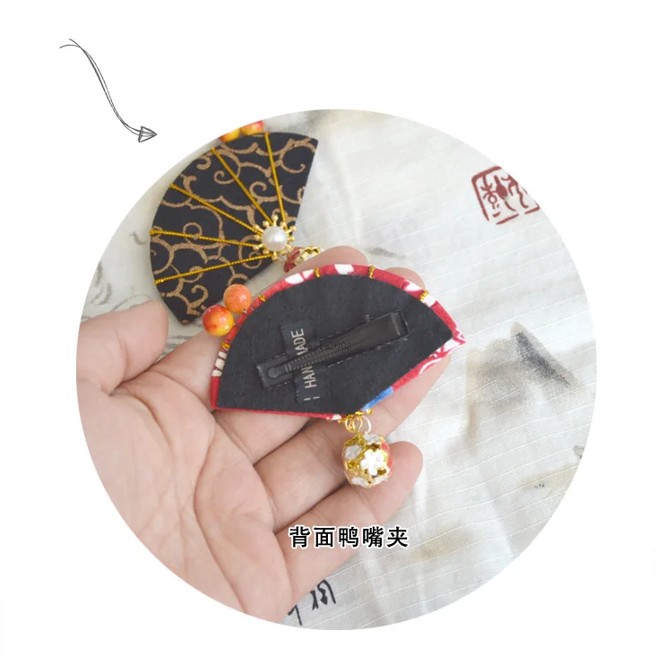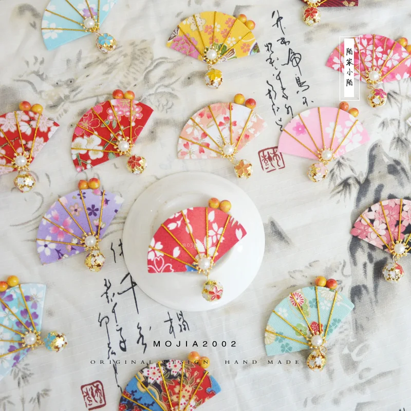 Handmade Japanese Hairpin Fan Tassel Hair clip Sakura Tsumami zaiku Women Headdress Lolita Hair Acc