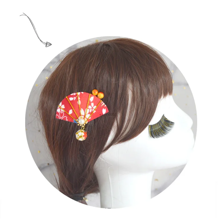 Hot Sale Handmade Japanese Hairpin Fan Tassel Hair clip Sakura Tsumami zaiku Women Headdress Lolita Hair Acc
