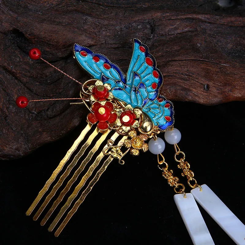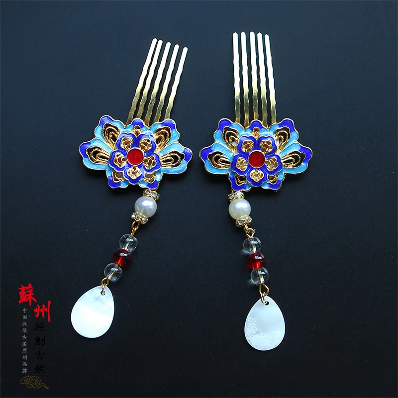 Best Seller Multi Design Blue Cloisonne Hair Pins Hair Combs Hanfu Cosplay Hair Accessory for TV Play or Photog