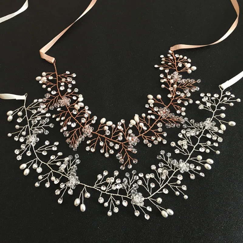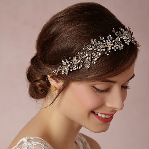 Hot sale SLBRIDAL Classic Crystal and Pearls Wedding Headpiece Hair Vine Hair accessories Headband